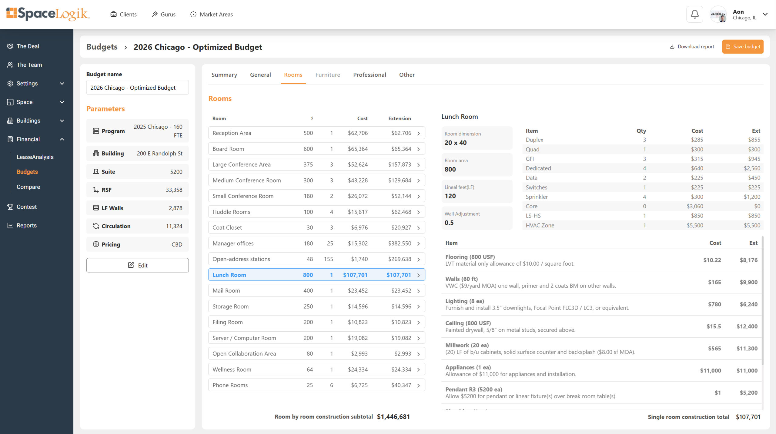 - See room-by-room detail, general conditions, & professional fees
