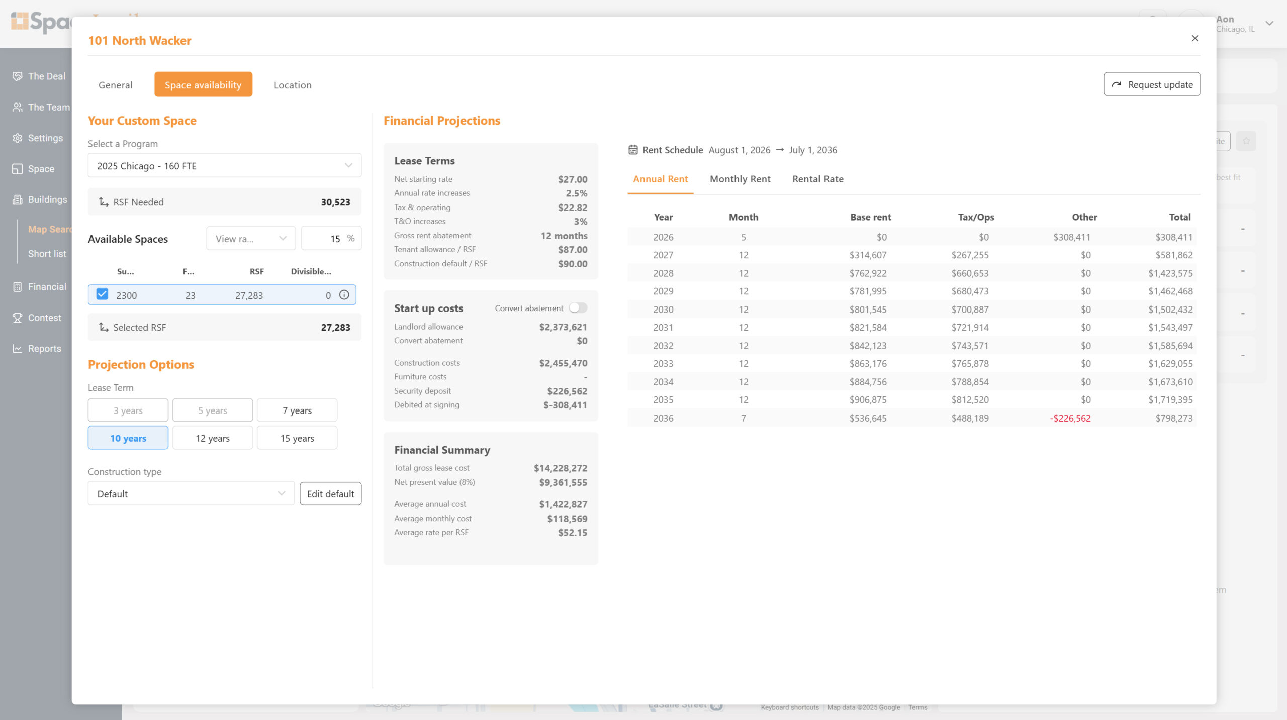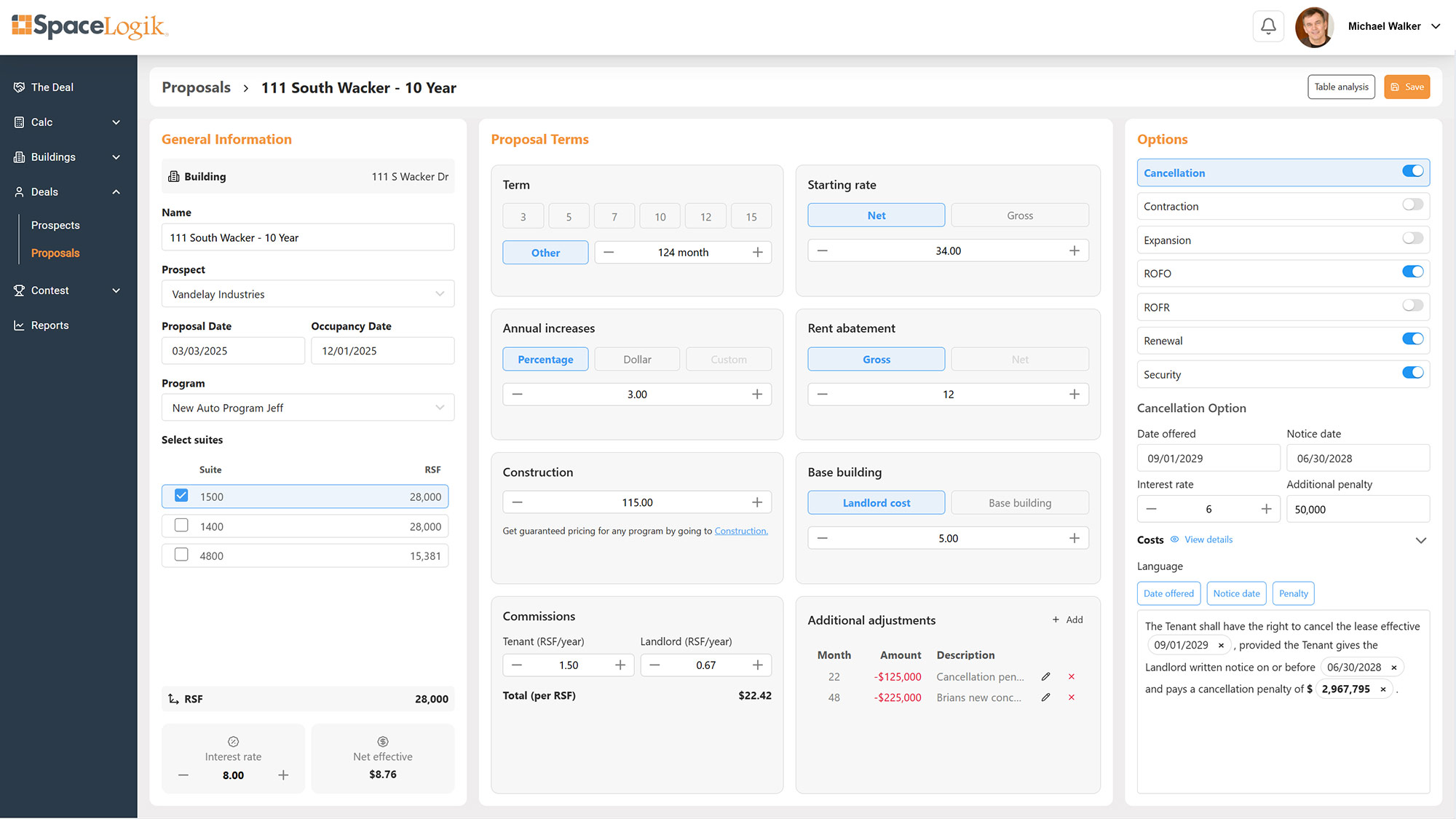 - Instantly calculates lease costs on any suite, any building, any term
