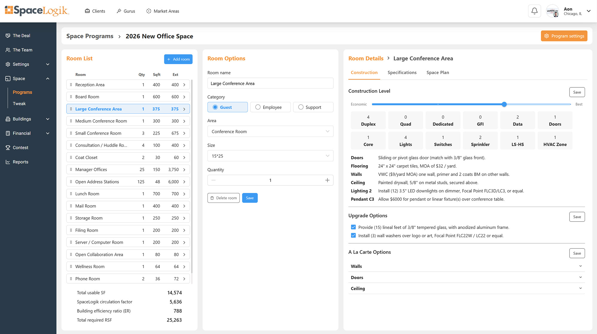 With SpaceLogik, guaranteed construction pricing is just a click away. Just match your space program with the desired building/suite and SpaceLogik builds a full construction budget.